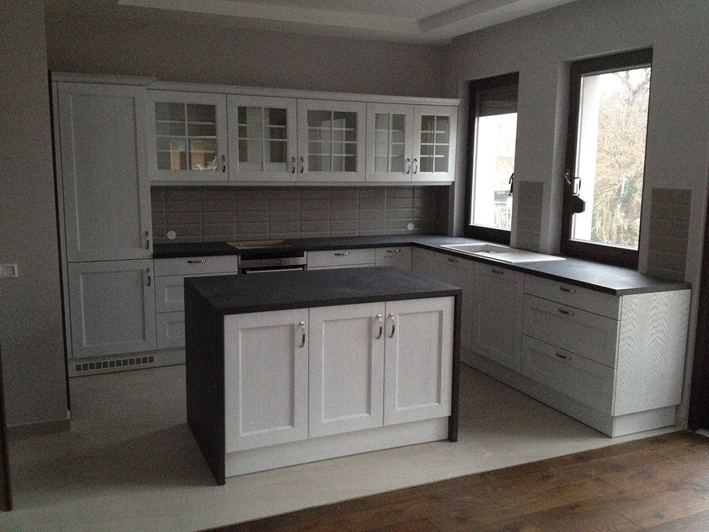 Klassische Küchen sind wieder in Mode. Dunstabzugshauben mit Kamin, Porzellanhandgriffe, Türen aus Vollholz wachrufen alle die alten Zeiten, aber können sich gut mit modernen technischen Lösungen leiden.