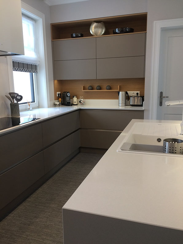 Jellemzőek a rejtett fogantyúk, melyek nem törik meg a sík felületek rendjét.