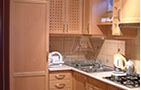Conventional design is typical. It is usually made of wood door-boards. The colours are the same. Spice racks, trellis and decorative guards make it vivid. You can also choose either porcelain or copper handles.