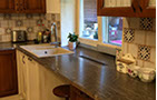 The kitchen furniture suits with rustic looking ovens and integrated dishwashers with hidden control panel.
