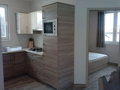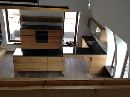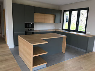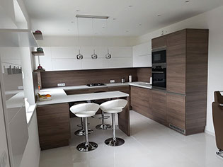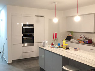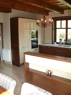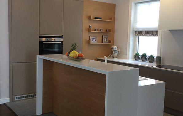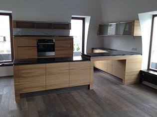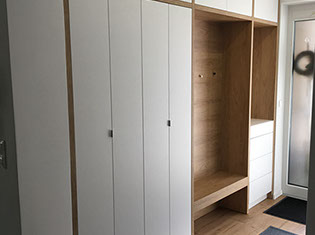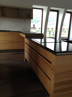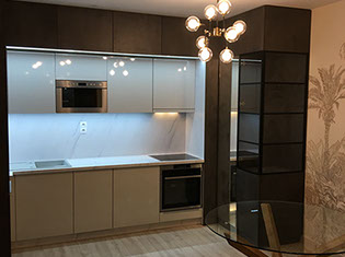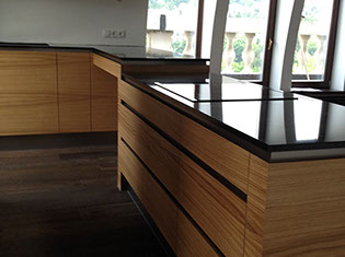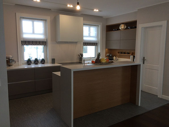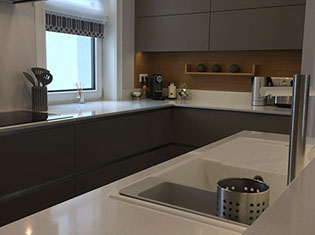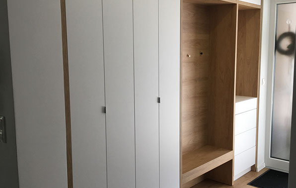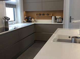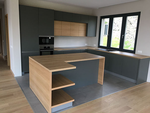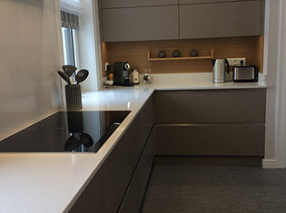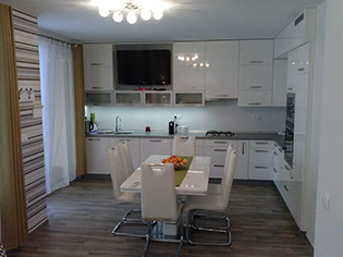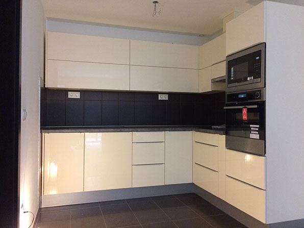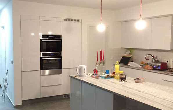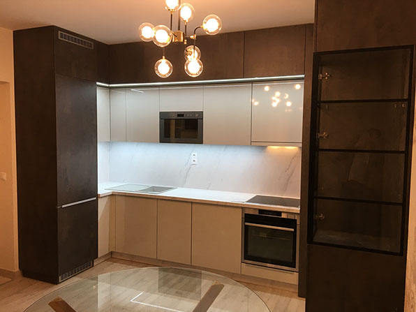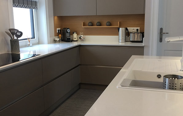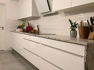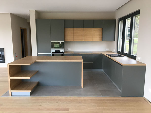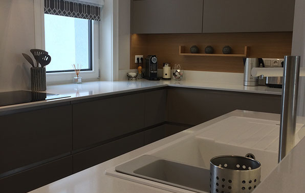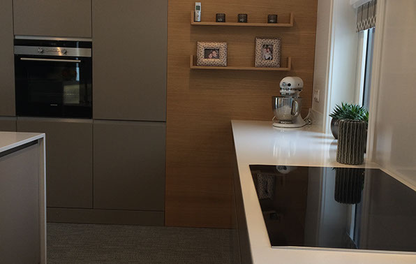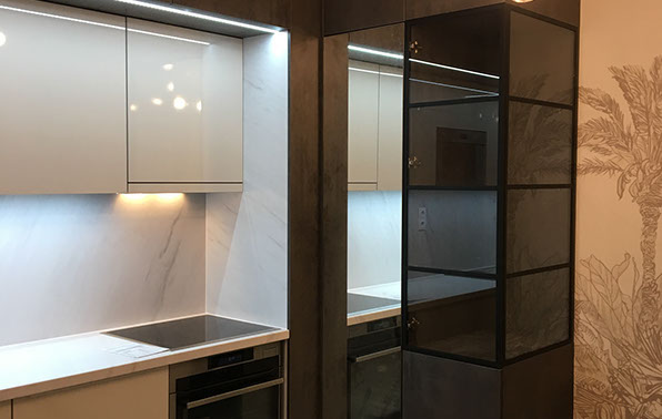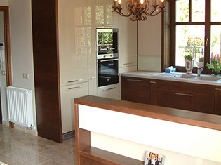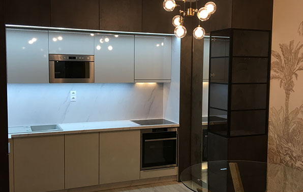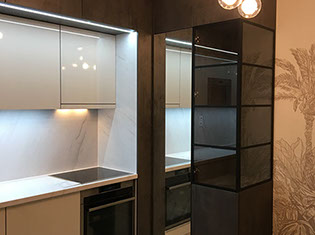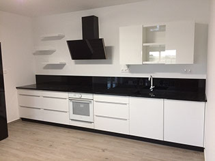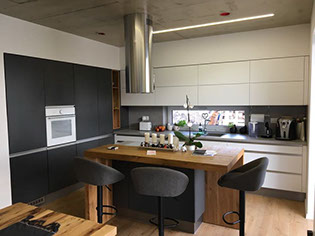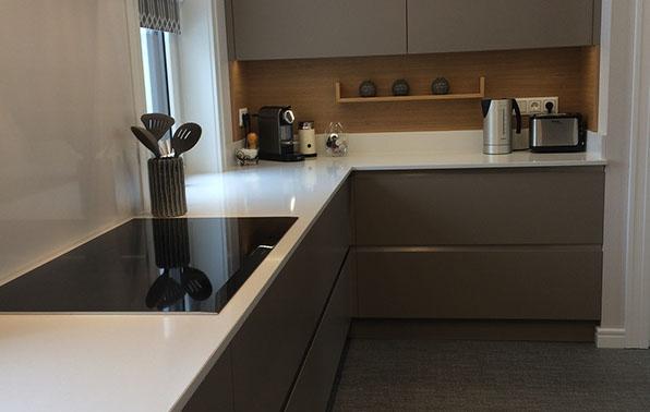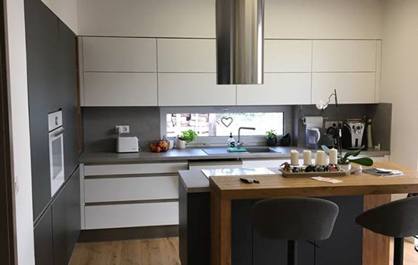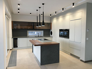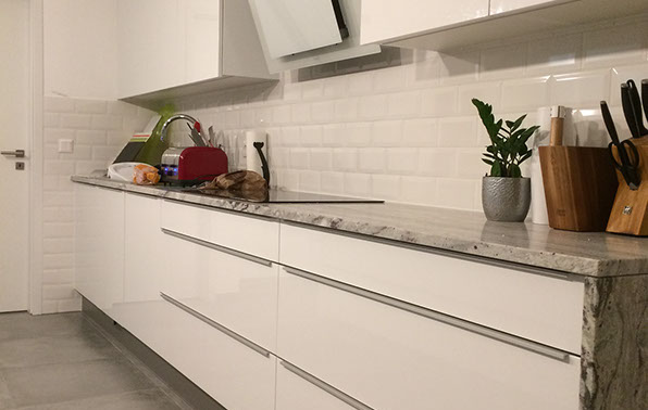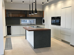 Jellemzőek a rejtett fogantyúk, melyek nem törik meg a sík felületek rendjét.